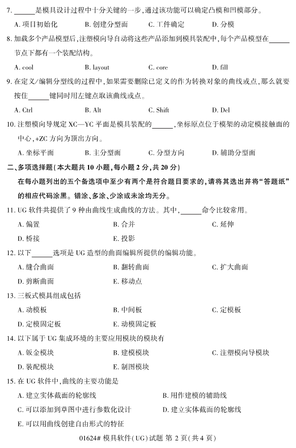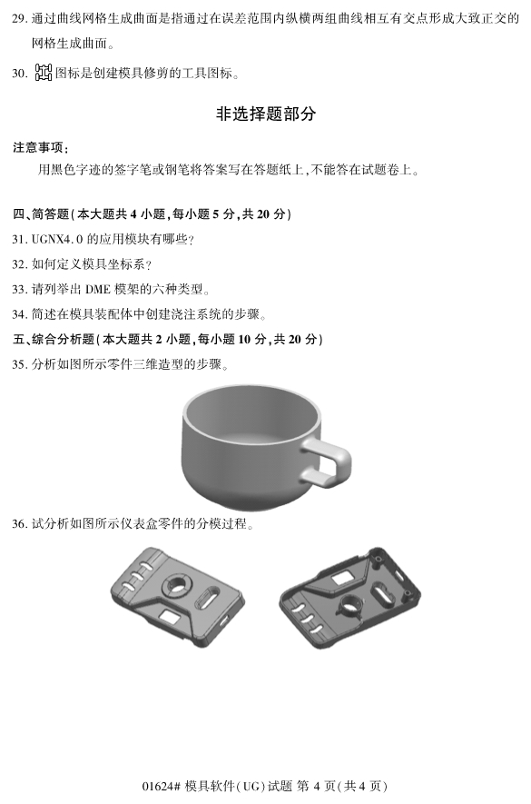 2019年10月份全国自考《模具软件》 考试真题