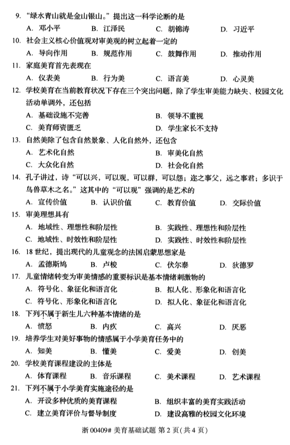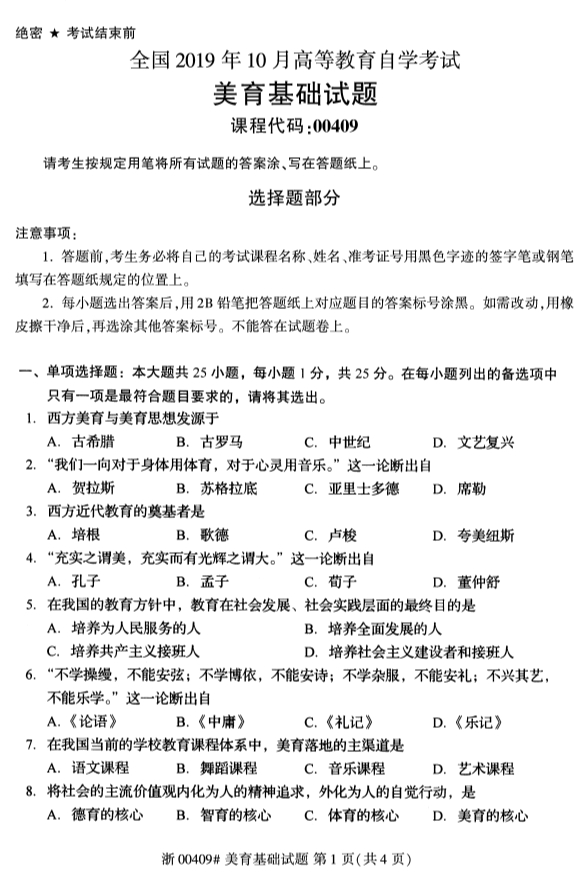 • 所在位置:甘肃自考网 > 自考试卷 > 2019年10月份全国自考《美育基础》 考试真题 ​