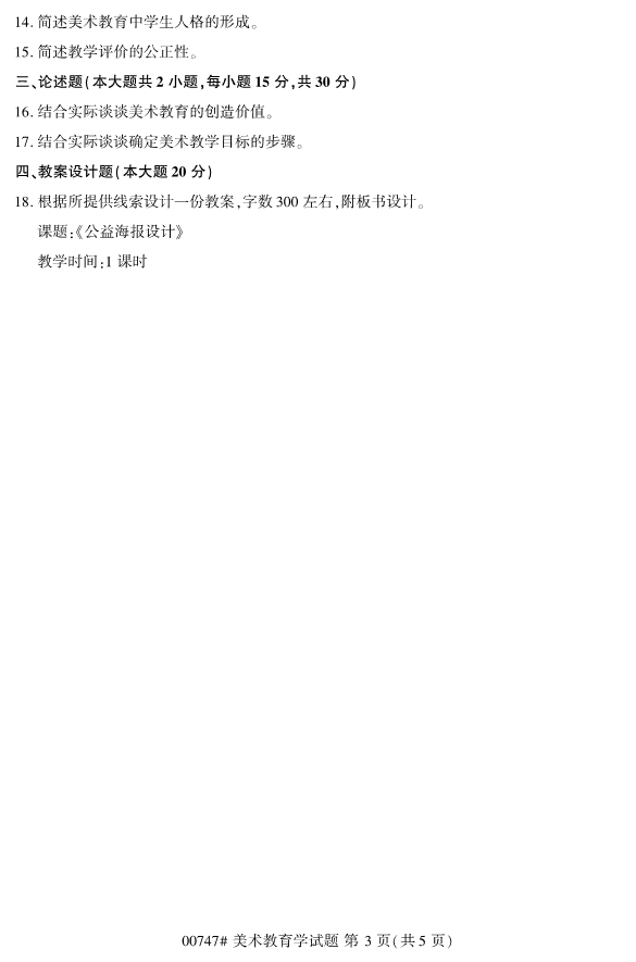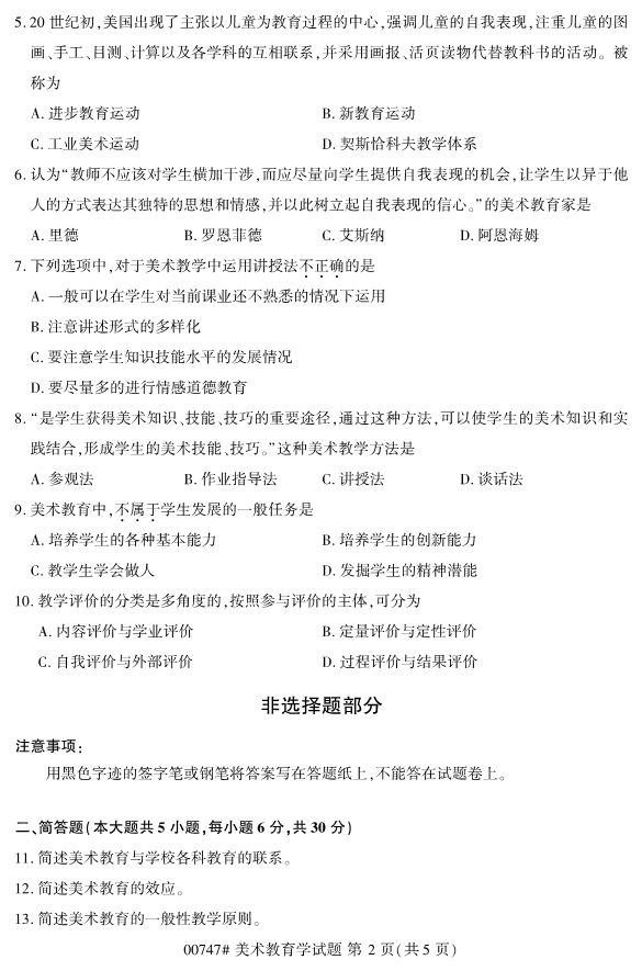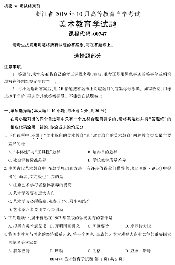 • 所在位置:甘肃自考网 > 自考试卷 > 2019年10月份全国自考《美术教育学》 考试真题