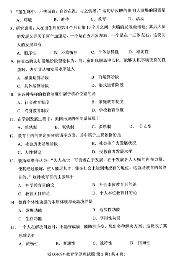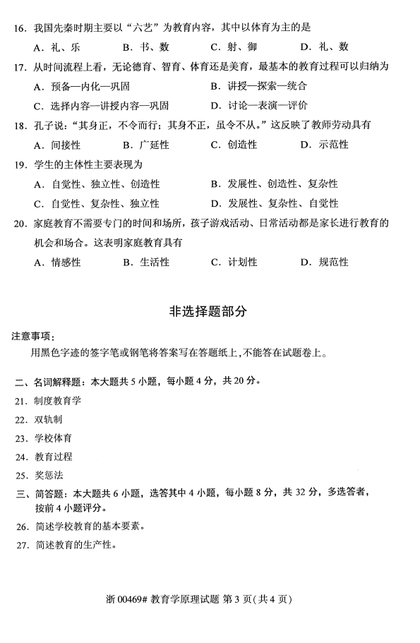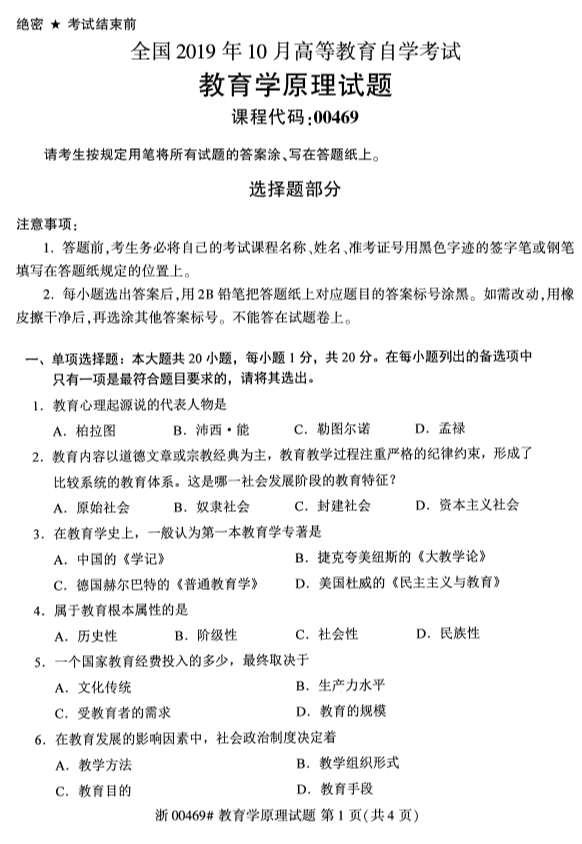 • 所在位置:甘肃自考网 > 自考试卷 > 2019年10月份全国自考《教育学原理》 考试真题