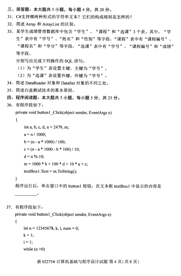 • 所在位置:甘肃自考网 > 自考试卷 > 2020年8月甘肃自考计算机基础与程序设计真题