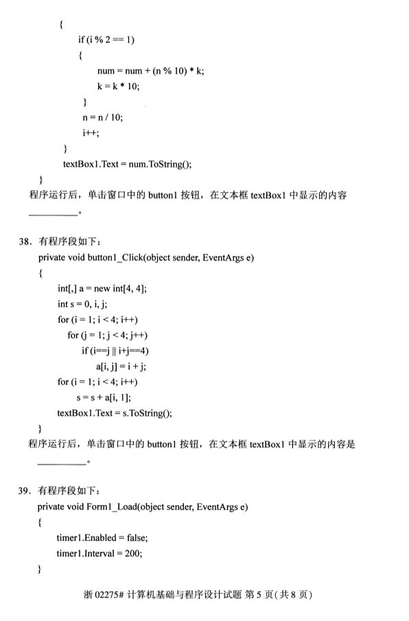 甘肃自考计算机基础与程序设计真题