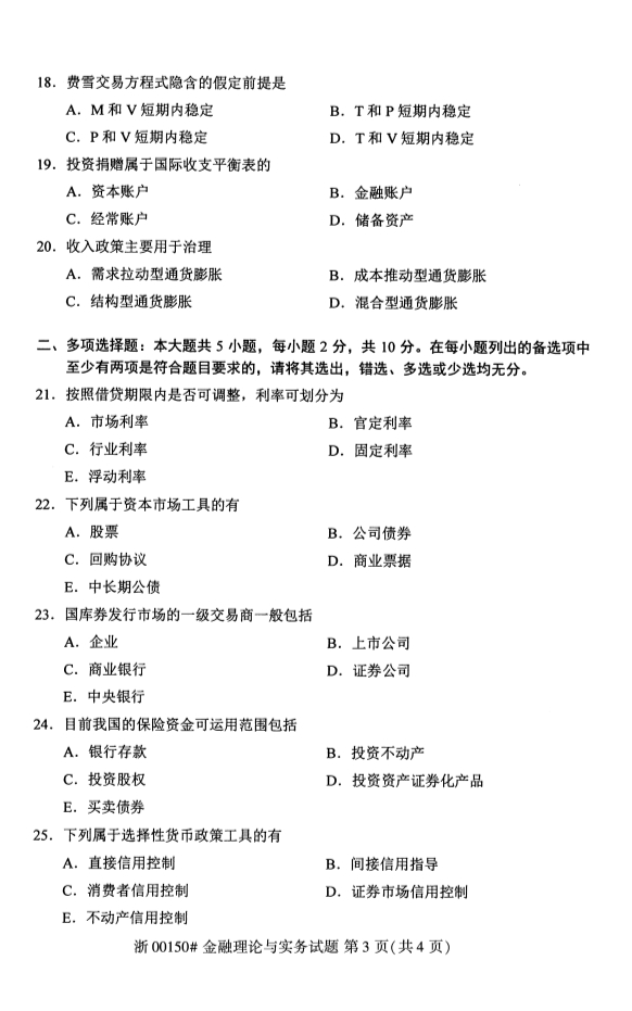 甘肃自考金融理论与实务真题