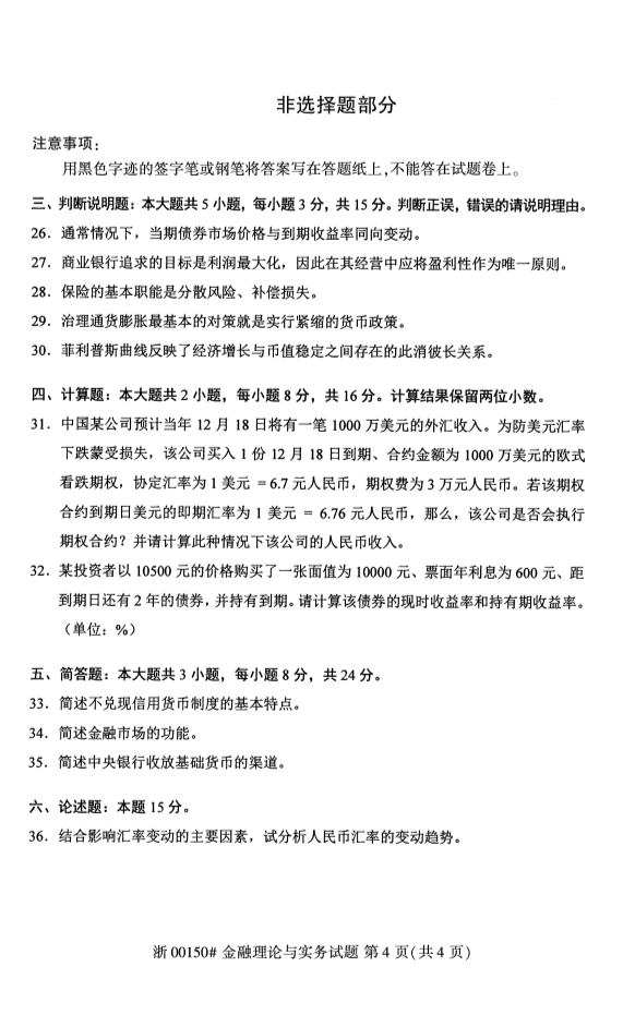 2020年8月甘肃自考金融理论与实务真题如下: