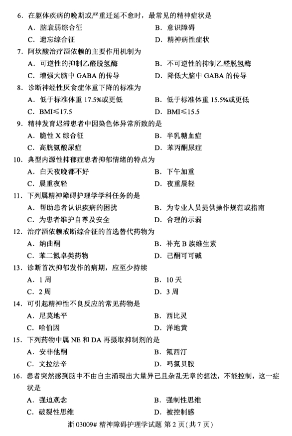 • 所在位置:甘肃自考网 > 自考试卷 > 2020年8月甘肃自考精神障碍护理学真题
