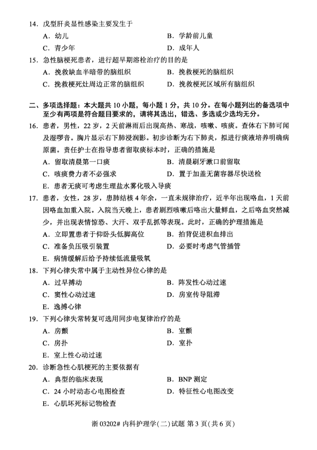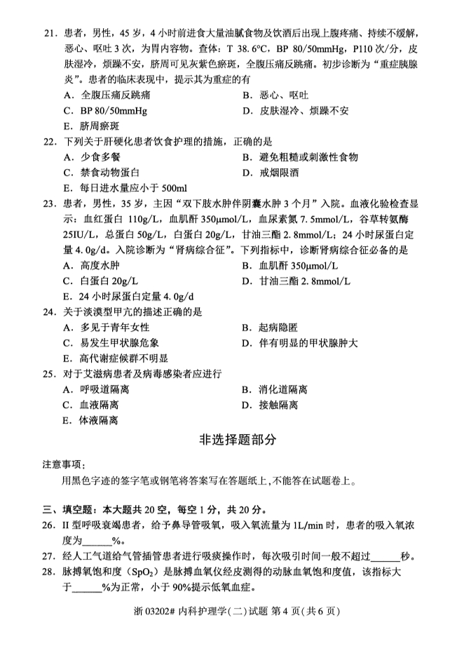 • 所在位置:甘肃自考网 > 自考试卷 > 2020年8月甘肃自考内科护理学真题