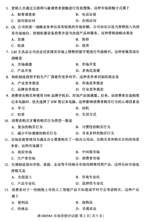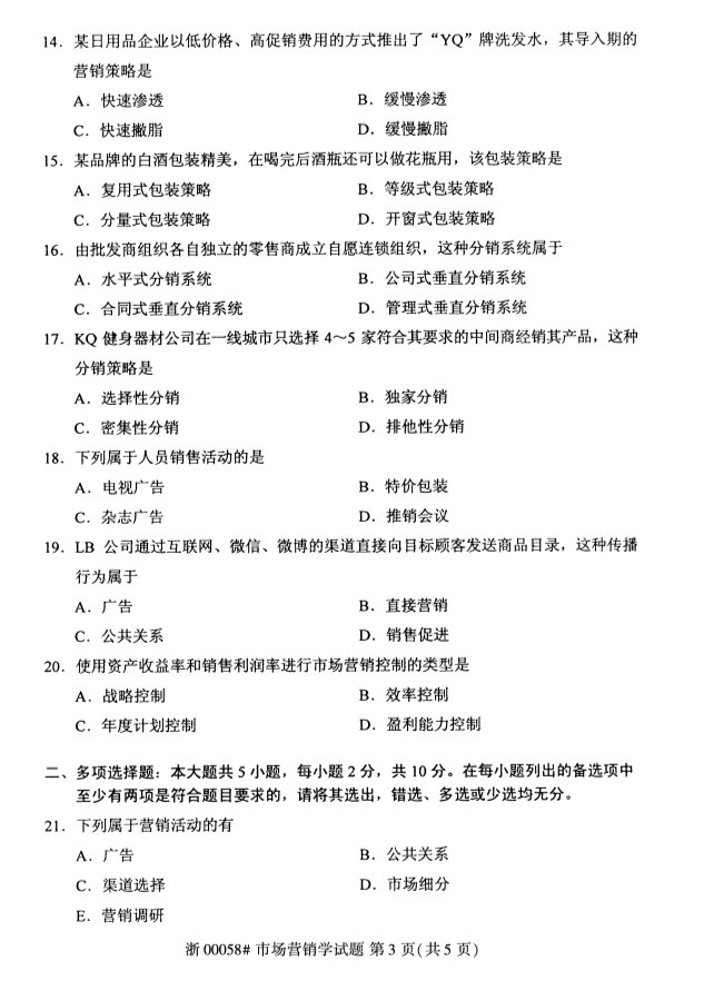 • 所在位置:甘肃自考网 > 自考试卷 > 2020年8月甘肃自考市场营销学真题