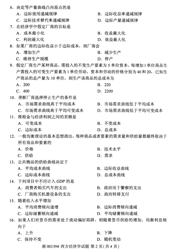 • 所在位置:甘肃自考网 > 自考试卷 > 2020年8月甘肃自考西方经济学真题