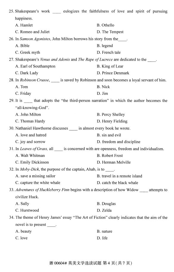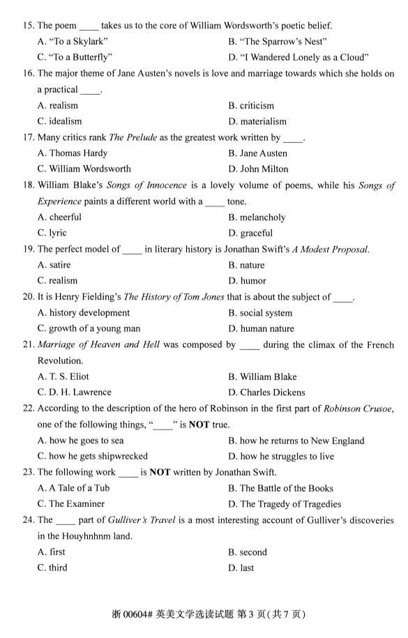 - 2024年10月甘肃自学考试00422唐诗研究试题 12-25
