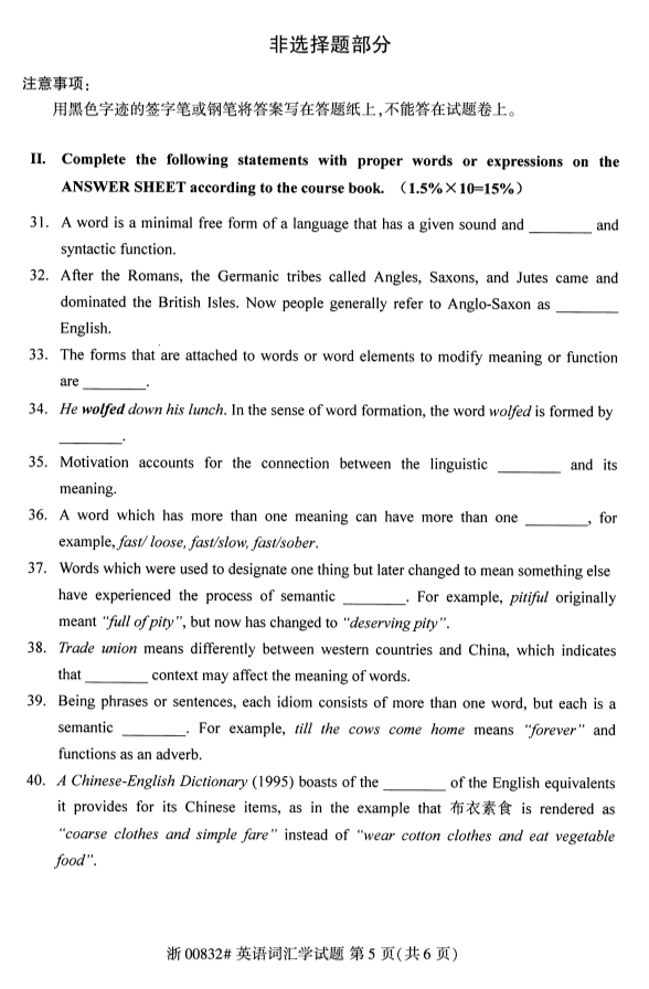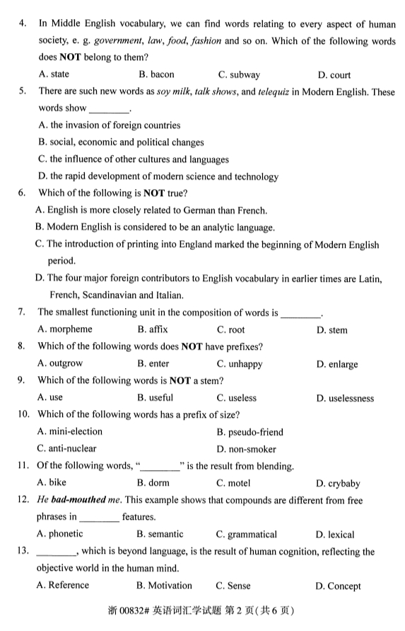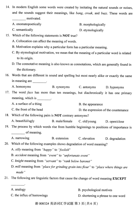 甘肃自考英语词汇学真题