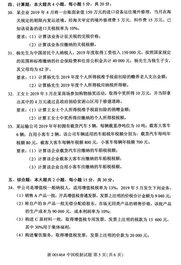 • 所在位置:甘肃自考网 > 自考试卷 > 2020年8月甘肃自考中国税制真题