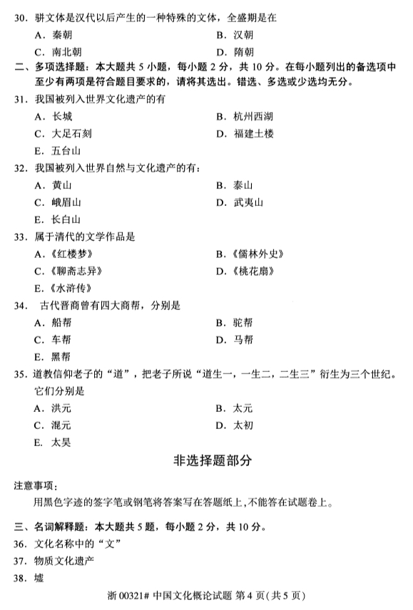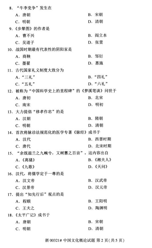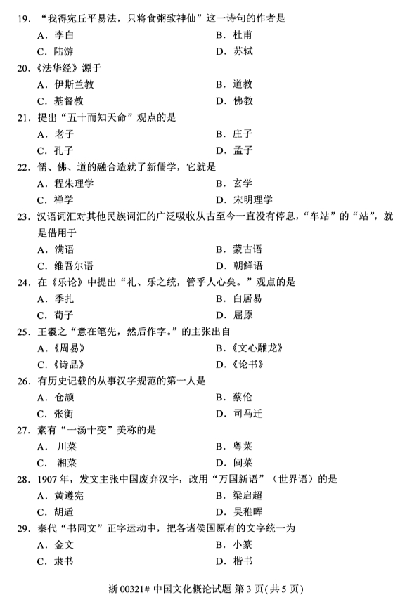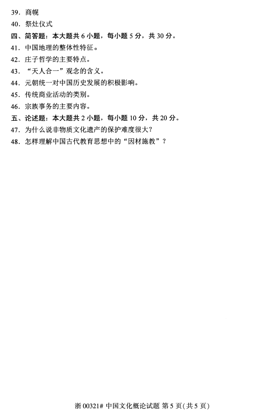 • 所在位置:甘肃自考网 > 自考试卷 > 2020年8月甘肃自考中国文化概论真题