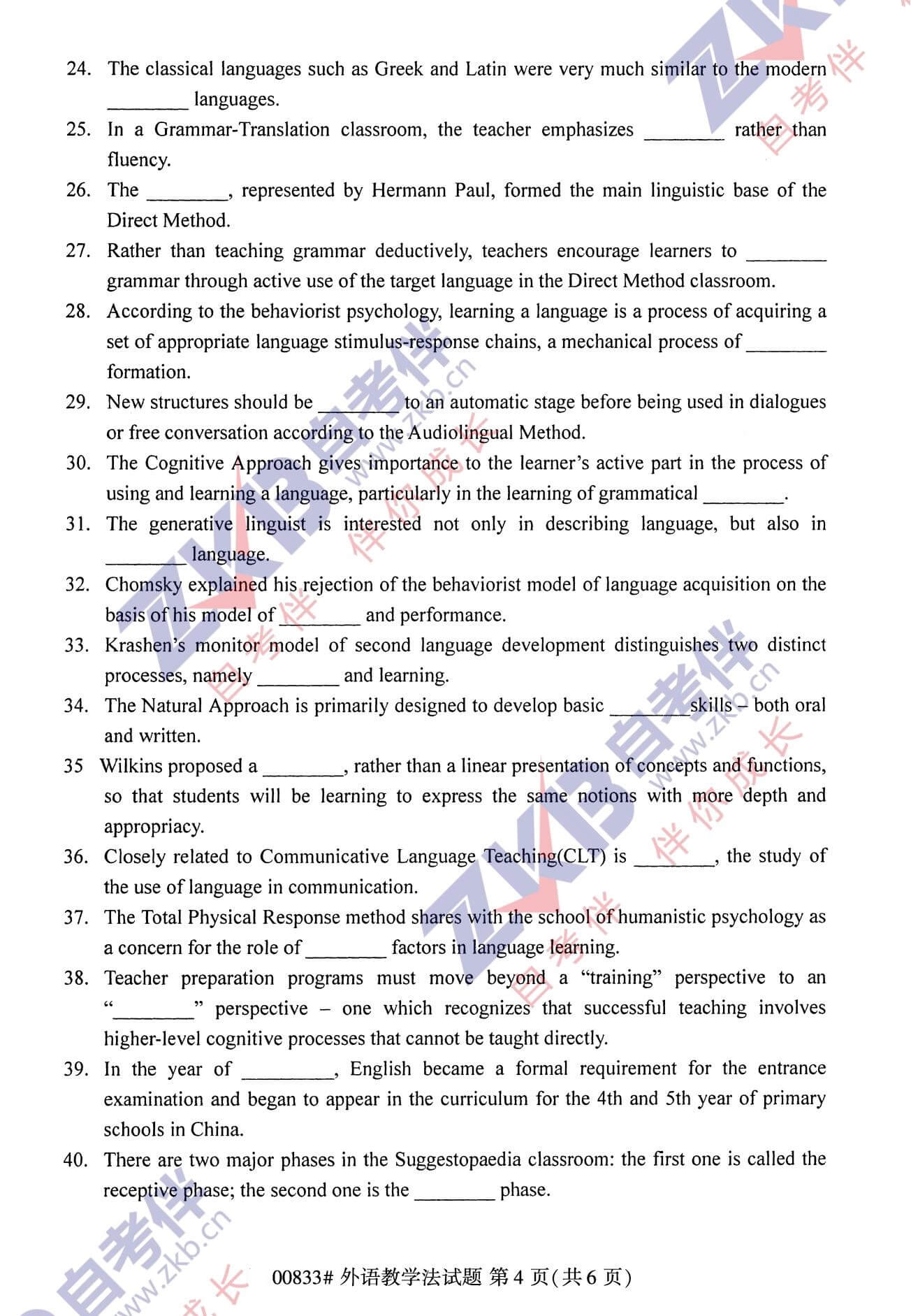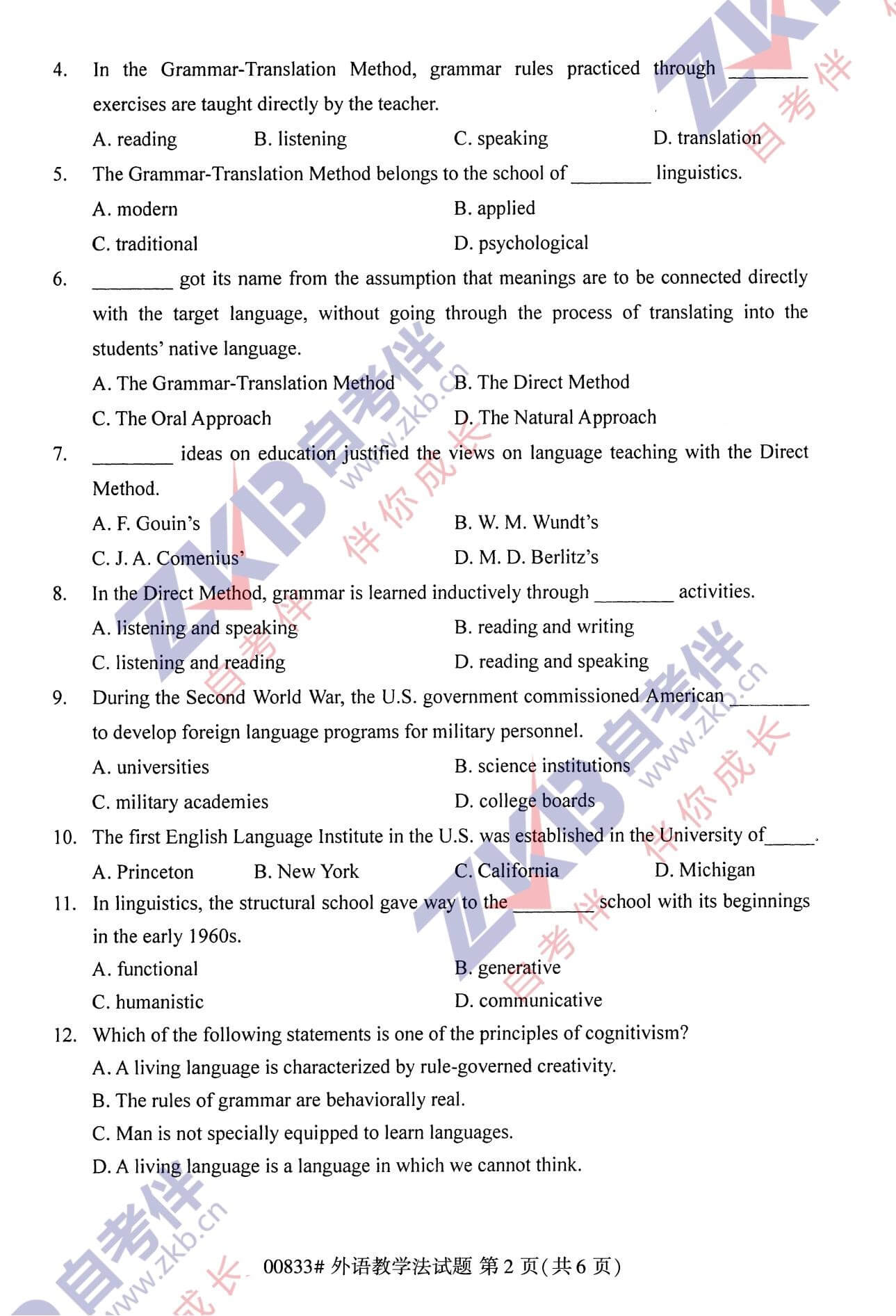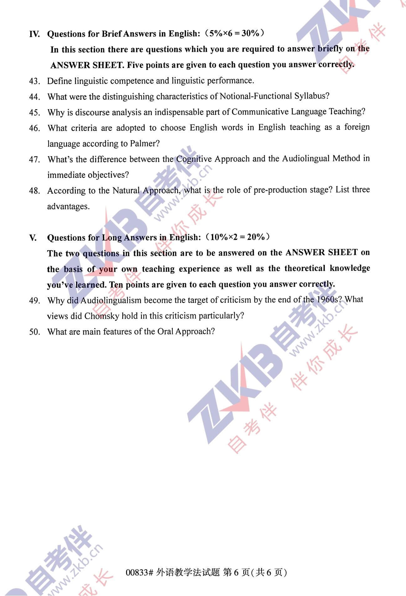 • 所在位置:甘肃自考网 > 自考试卷 > 2021年10月甘肃自考00833外语教学法真题
