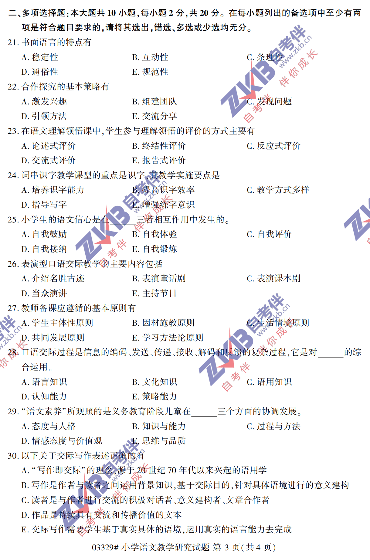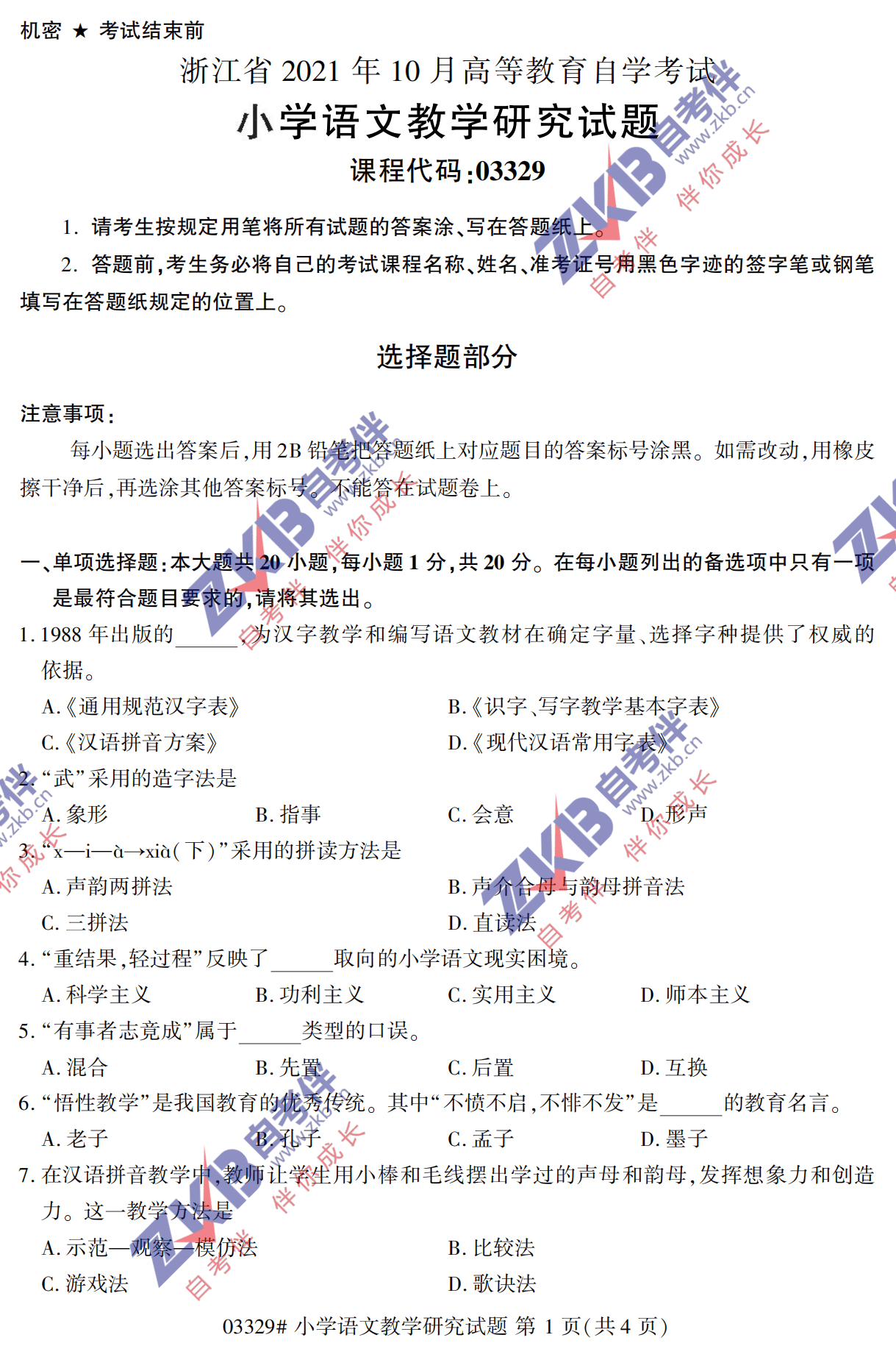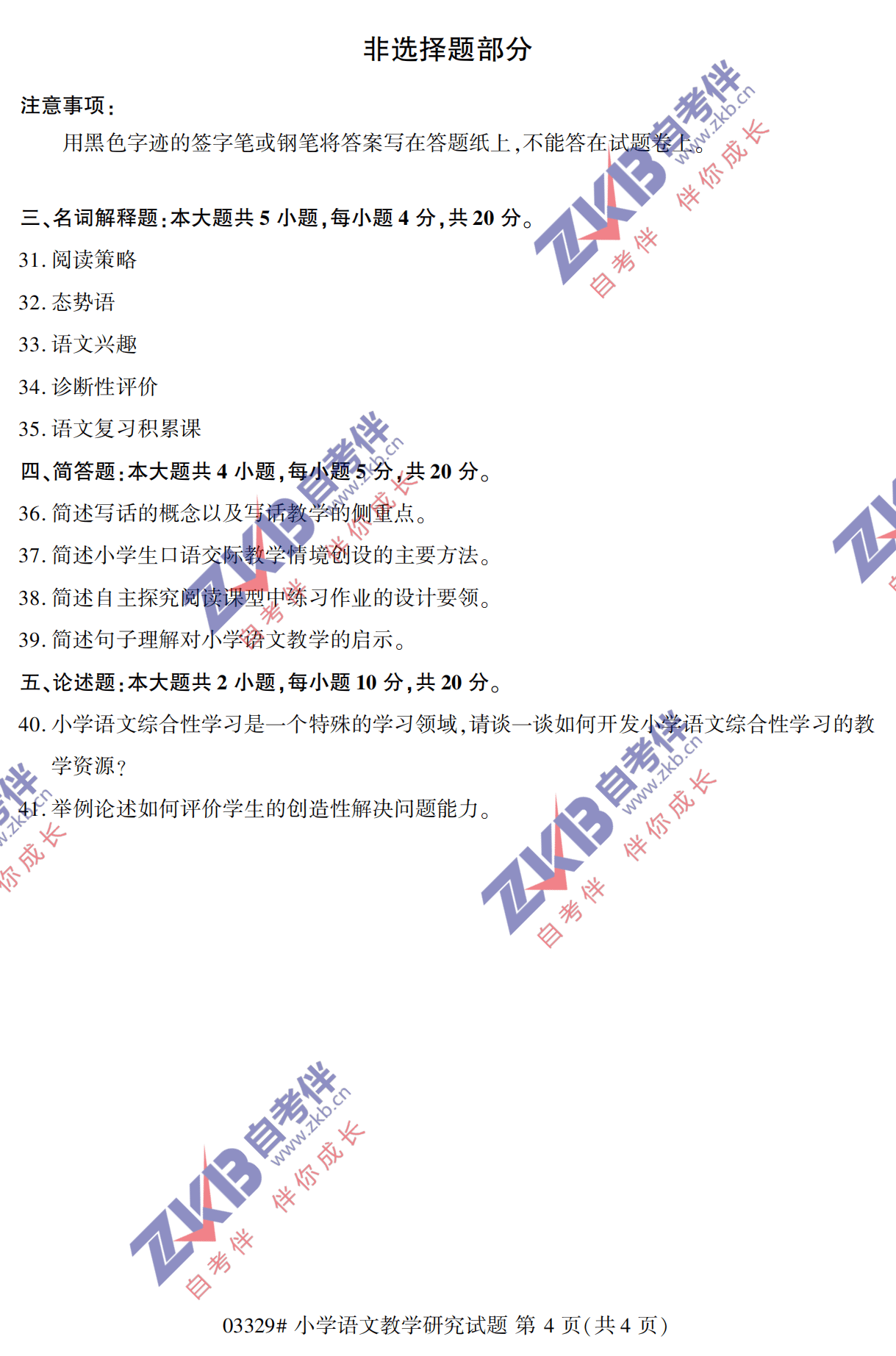 - 2024年10月甘肃自学考试00412小学... 12-24